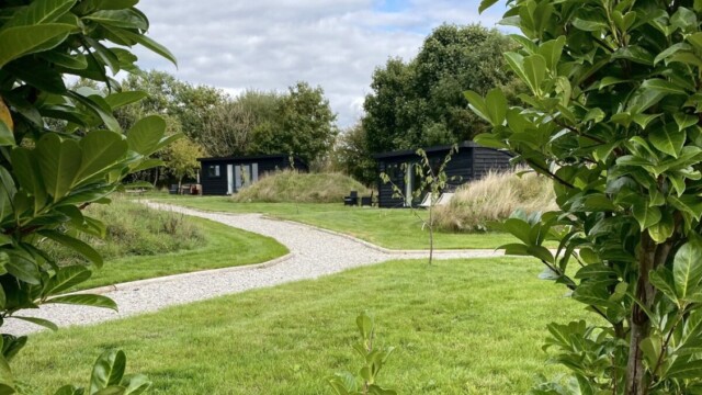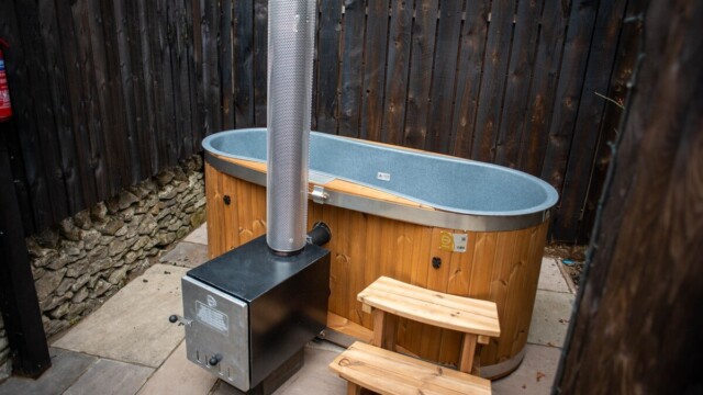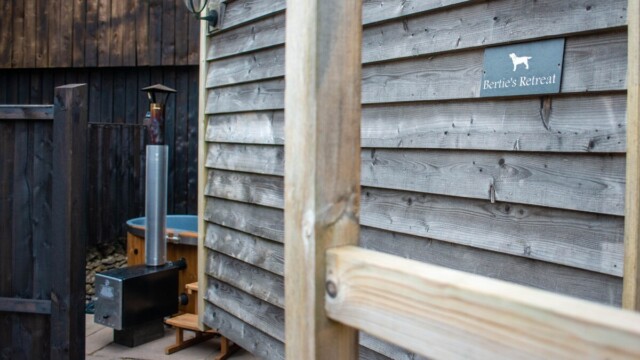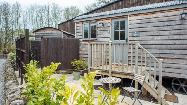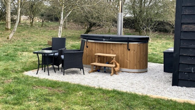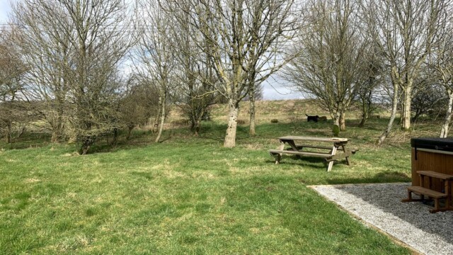 The cabins are situated in a large, open, private field. Robins is situated at the top of the field and the hot tub is on the top side of the cabin. Each cabin has their own area for sitting out.